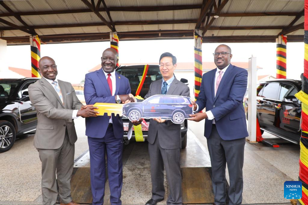 Ugandan officials and Chinese Ambassador to Uganda Zhang Lizhong (2nd R) attend a hand-over ceremony of SUV vehicles in Kampala, Uganda, on Dec. 14, 2023. China has pledged to support Uganda as the East African country gears up to host the 19th Non-Aligned Movement (NAM) Summit and the 3rd South Summit. This was revealed here Thursday by Chinese Ambassador to Uganda Zhang Lizhong while handing over 70 SUV cars to the Ugandan government. (Ministry of Foreign Affairs of Uganda/Handout via Xinhua)