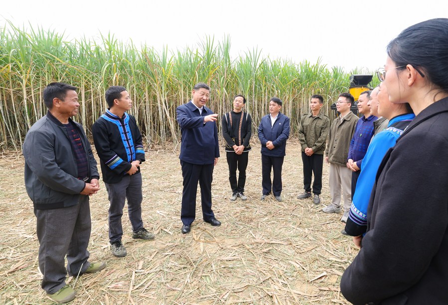 On Thursday afternoon, Xi inspected the city of Laibin. While visiting a sugarcane base in the city, he noted that Guangxi, the country's major sucrose production base, should further develop its characteristic sugar industry so as to play a bigger role in ensuring national sugar security and increasing sugarcane farmers' income.