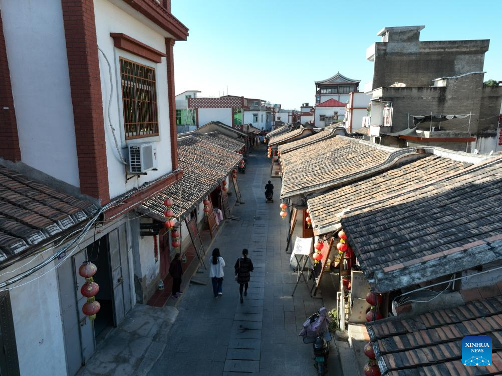 This aerial photo taken on Nov. 20, 2023 shows a street in Douxiang Village in Longhai District of Zhangzhou City, southeast China's Fujian Province. Located at the eastern end of the maritime Silk Road, Fujian has given play to its unique strengths in the joint implementation of the Belt and Road Initiative (BRI) and achieved fruitful results in building the core region of the 21st Century Maritime Silk Road.