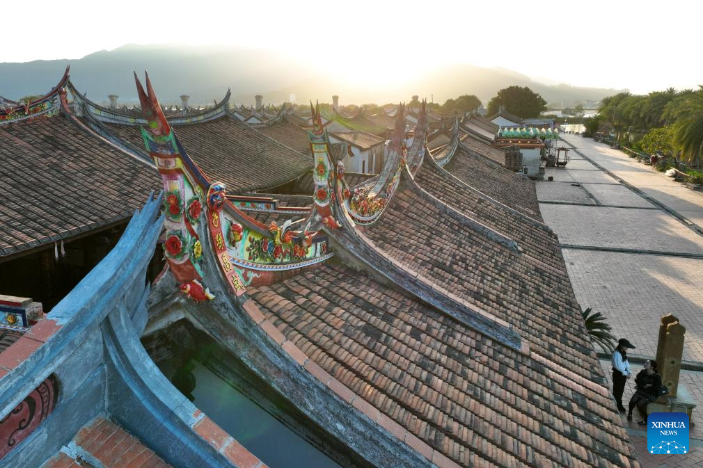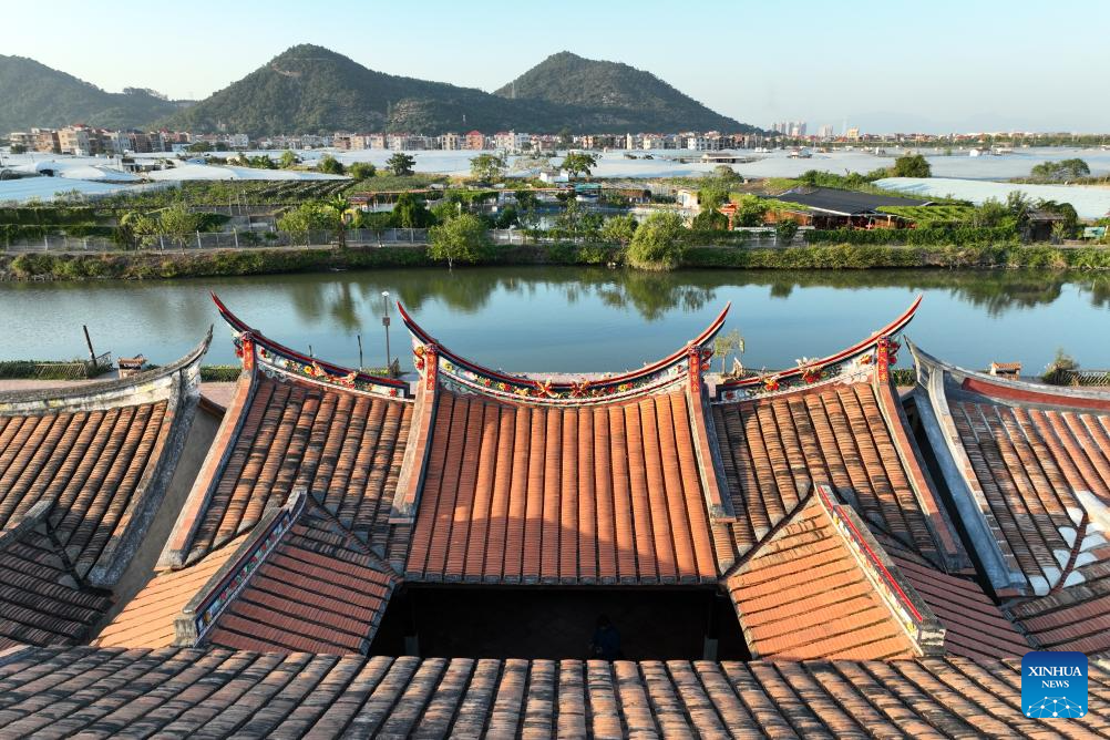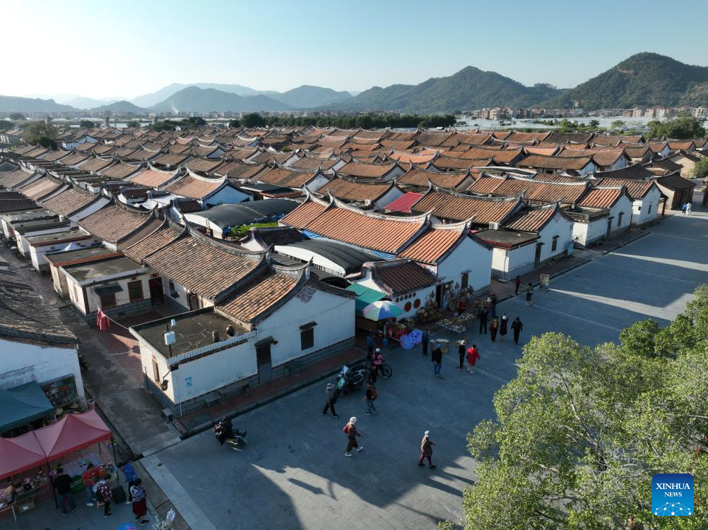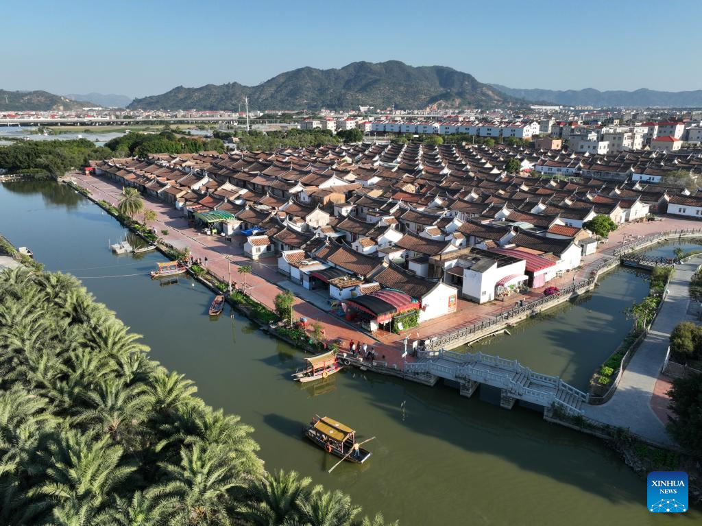 This aerial photo taken on Nov. 20, 2023 shows the residential houses at Daimei Village, known as the "ancient village on water", in Longhai City, southeast China's Fujian Province. Located at the eastern end of the maritime Silk Road, Fujian has given play to its unique strengths in the joint implementation of the Belt and Road Initiative (BRI) and achieved fruitful results in building the core region of the 21st Century Maritime Silk Road.