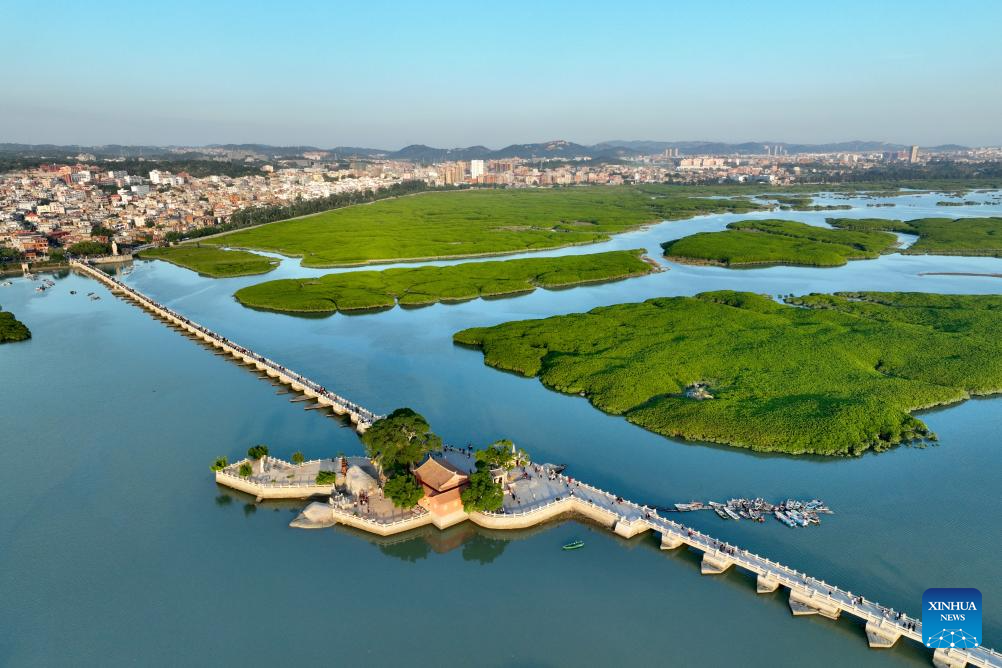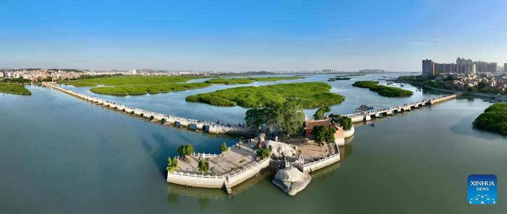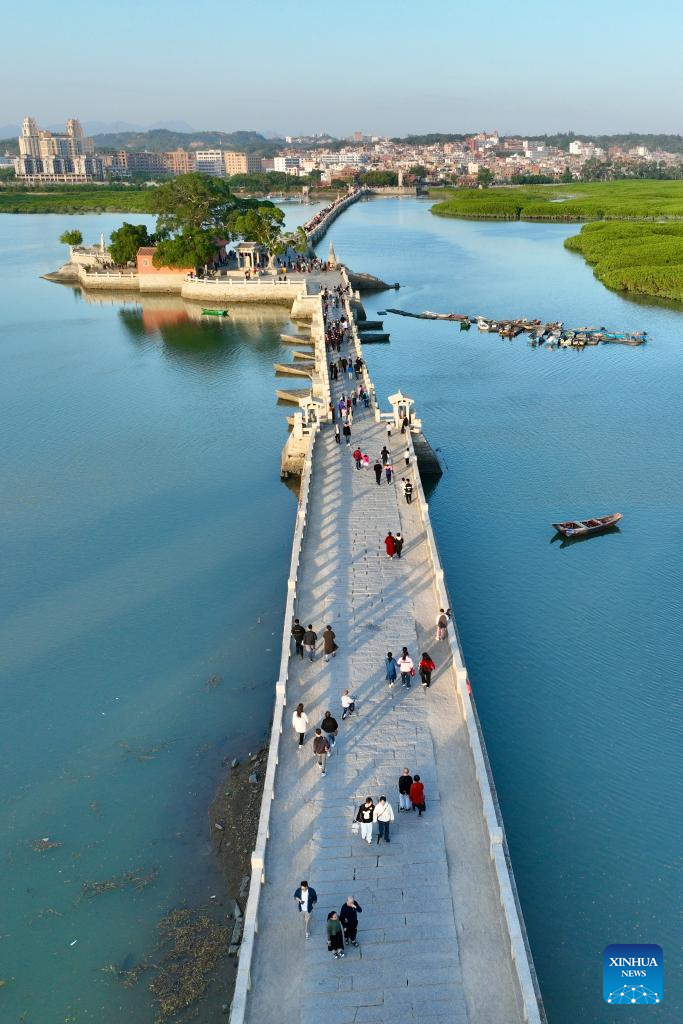 This aerial photo taken on Nov. 19, 2023 shows Luoyang Bridge, one of China's four famous ancient bridges, in Quanzhou, southeast China's Fujian Province. Located at the eastern end of the maritime Silk Road, Fujian has given play to its unique strengths in the joint implementation of the Belt and Road Initiative (BRI) and achieved fruitful results in building the core region of the 21st Century Maritime Silk Road.