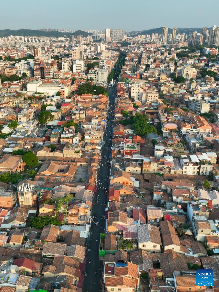 This aerial photo taken on Nov. 7, 2023 shows a view of Xijie, an ancient street area, in Quanzhou, southeast China's Fujian Province. Located at the eastern end of the maritime Silk Road, Fujian has given play to its unique strengths in the joint implementation of the Belt and Road Initiative (BRI) and achieved fruitful results in building the core region of the 21st Century Maritime Silk Road.