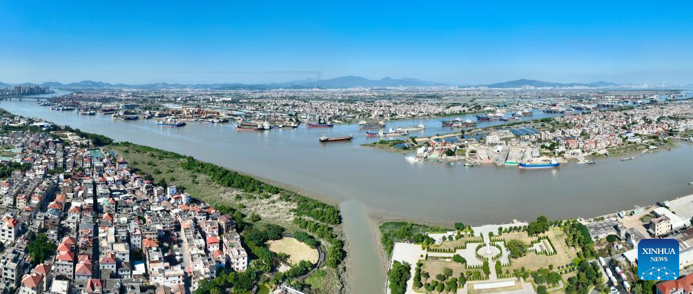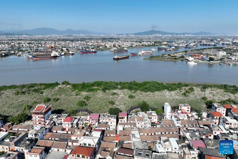 This aerial photo taken on Nov. 20, 2023 shows a view of Douxiang Village in Longhai District of Zhangzhou City, southeast China's Fujian Province. Located at the eastern end of the maritime Silk Road, Fujian has given play to its unique strengths in the joint implementation of the Belt and Road Initiative (BRI) and achieved fruitful results in building the core region of the 21st Century Maritime Silk Road.