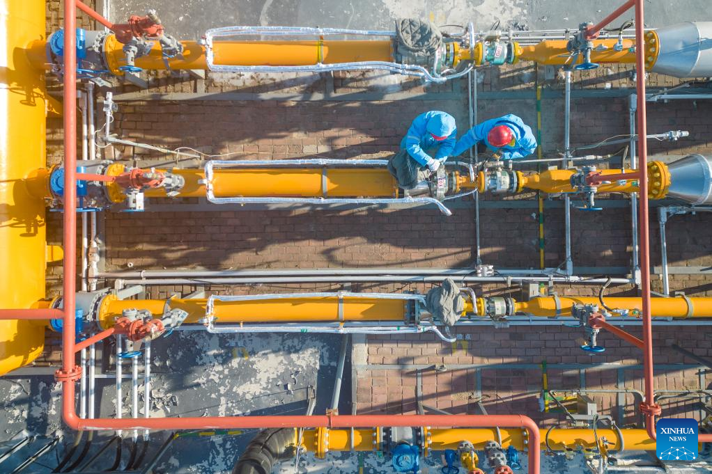 Staff members of Harbin Zhongqing Gas inspect pipelines in Harbin, northeast China's Heilongjiang Province, Dec. 17, 2023. Countermeasures have been taken to prevent or alleviate impacts inflicted by extensive snowfall and other freezing conditions. (Xinhua/Zhang Tao)
