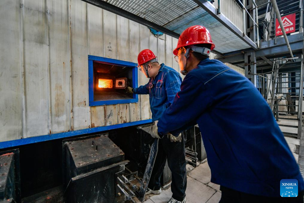 Staff members operate at a centralized heating company in Wuwei City, northwest China's Gansu Province, Dec. 17, 2023. Countermeasures have been taken to prevent or alleviate impacts inflicted by extensive snowfall and other freezing conditions. (Xinhua/Lang Bingbing)