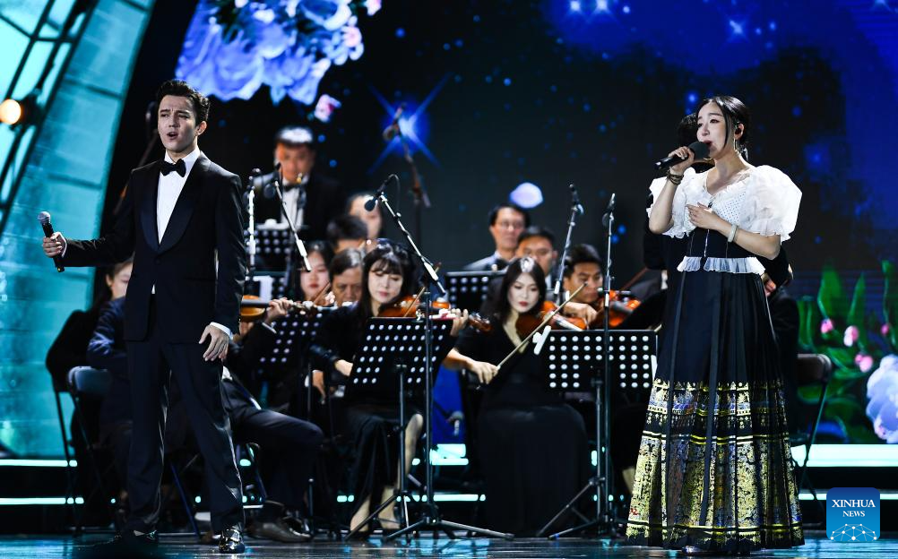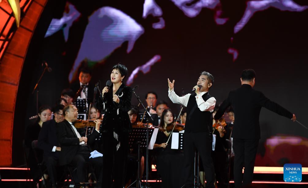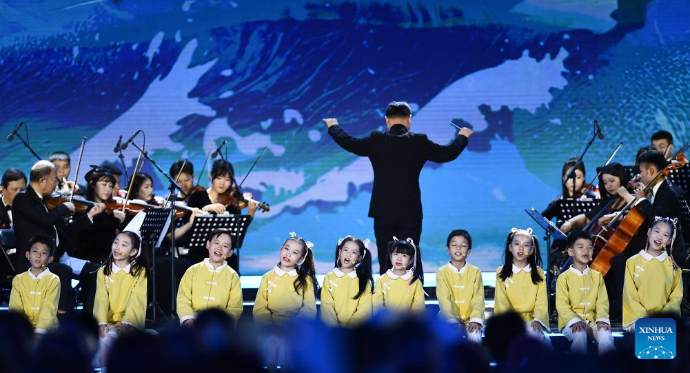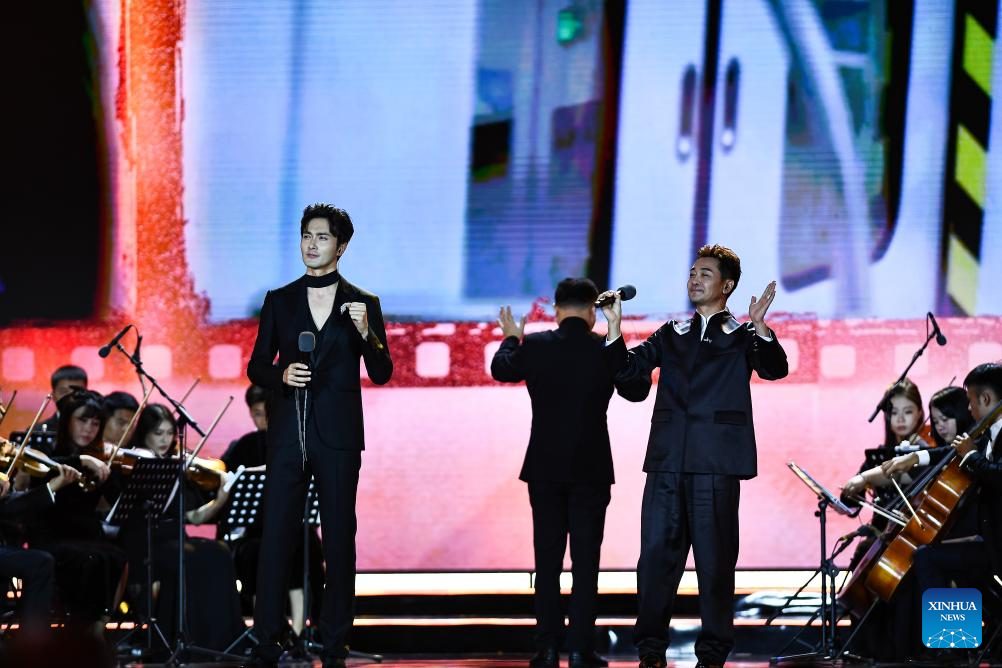 Actors perform during the opening ceremony of the 5th Hainan Island International Film Festival in Sanya, south China's Hainan Province, Dec. 16, 2023. The festival runs from Dec. 16 to 22. (Xinhua/Fan Yuqing)