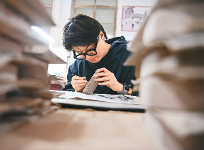 He has strived for excellence in the research and development of Chengni inkstones these past years. In 2020, a set of inkstones he designed won a gold prize at the first arts and crafts expo of Shanxi. Another of his inkstones won a bronze prize at an innovative product design competition a year later, and a grand award at the Xinjiang cultural and tourism trade fair in northwest China's Xinjiang Uygur Autonomous Region in 2023.