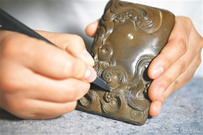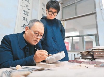 - Pic story of inheritor of Yellow River Chengni inkstone in Henan