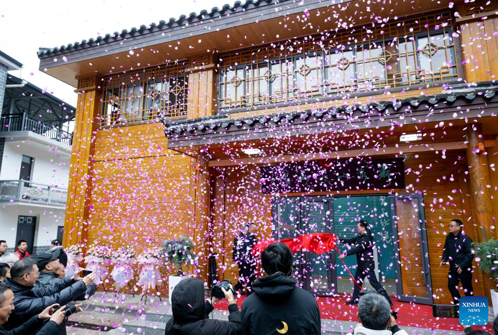 The Xiaojiashan aesthetic education research base and an intangible cultural heritage museum open in Xiaojiashan Village of Sanming City, southeast China's Fujian Province, Dec. 16, 2023. To utilize its land resources, Xiaojiashan Village has introduced quality academic resources to build an aesthetic education research base. The base will be equipped with an operation team in the future to better fulfill its functions. (Xinhua/Wei Peiquan)
