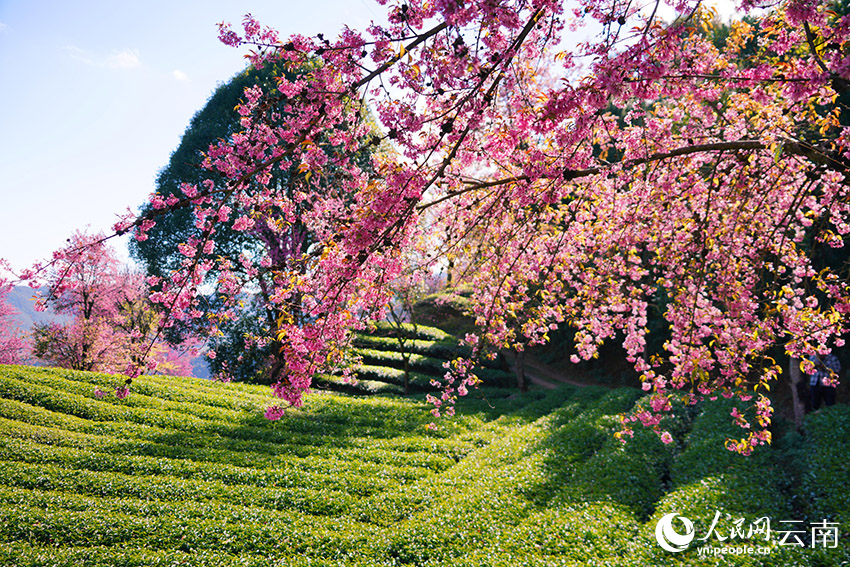 While snowfall has swept vast areas of northern China this mid-December, the Cherry Valley on Wuliang Mountain in Dali, southwest China's Yunnan Province, paints a different picture — tea fields thrive in vibrant green hues, and winter cherry blossoms burst into full bloom, covering the branches in a vibrant burst of pink.