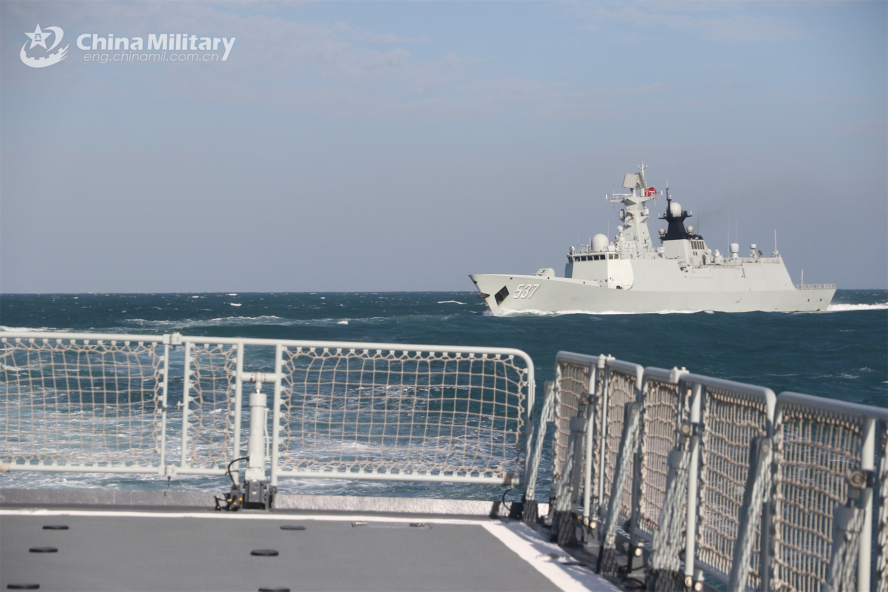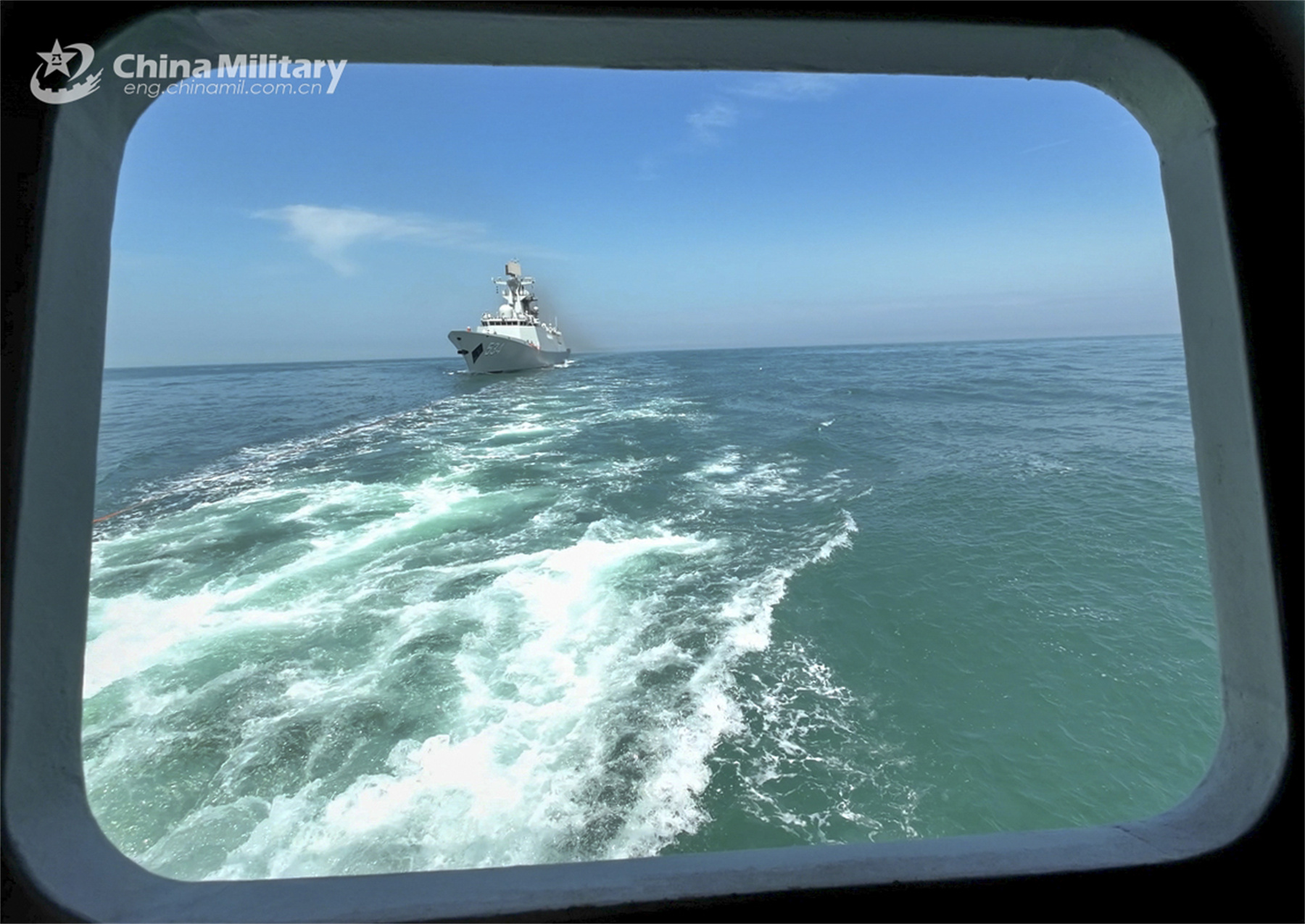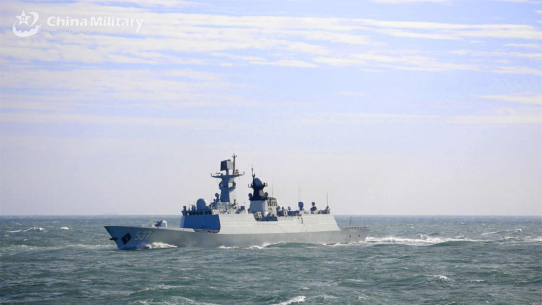 A frigate attached to a naval frigate flotilla under the PLA Eastern Theater Command sails to a designated sea area during the combat training on November 20, 2023. (eng.chinamil.com.cn/Photo by Liu Jia)