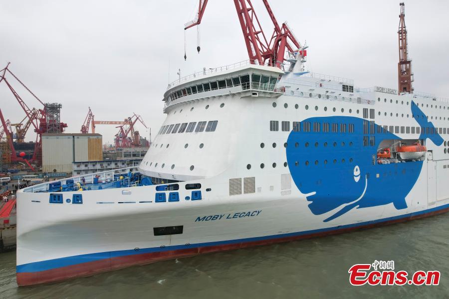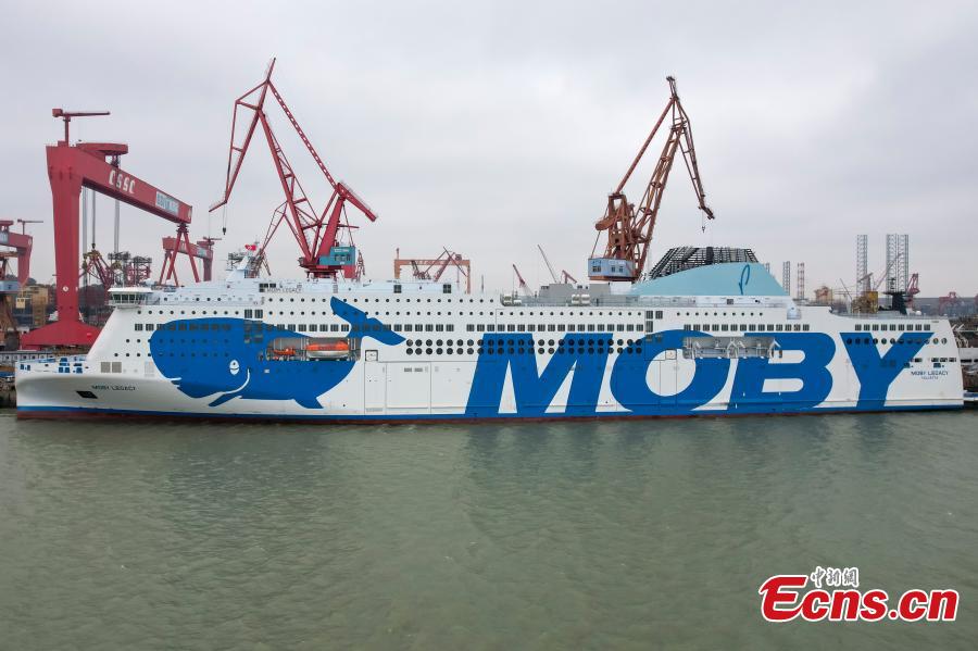 The world's largest ro-ro passenger ship "MOBY LEGACY" moors at a port in Guangzhou, south China's Guangdong Province, Dec. 19, 2023. (Photo: China News Service/Chen Jimin)