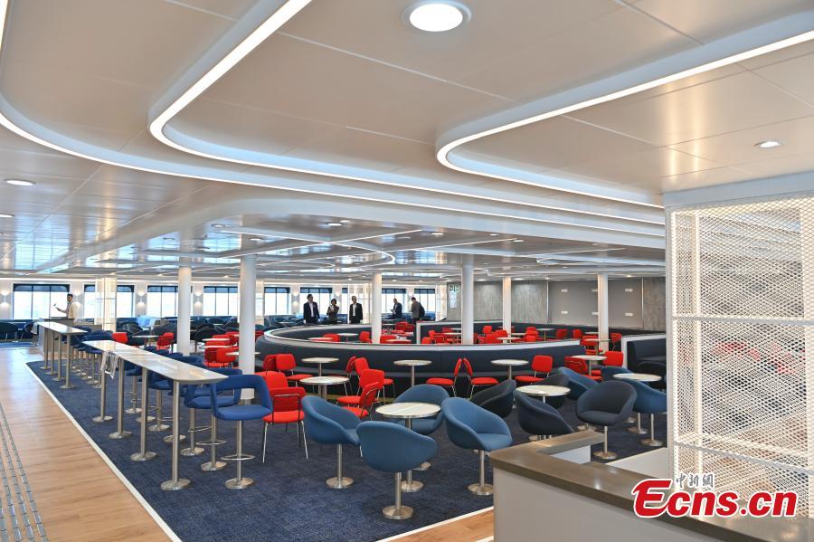 An interior view of the world's largest ro-ro passenger ship "MOBY LEGACY" at a port in Guangzhou, south China's Guangdong Province, Dec. 19, 2023. (Photo: China News Service/Chen Jimin)