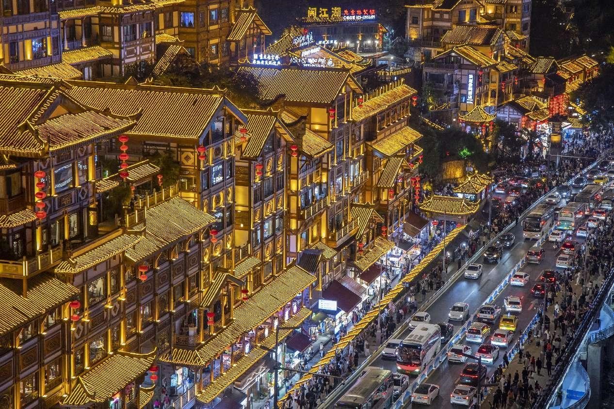 Photo taken on Nov. 8, 2023 shows the Hongyadong scenic area in southwest China's Chongqing municipality. (People's Daily Online/Sun Kaifang)