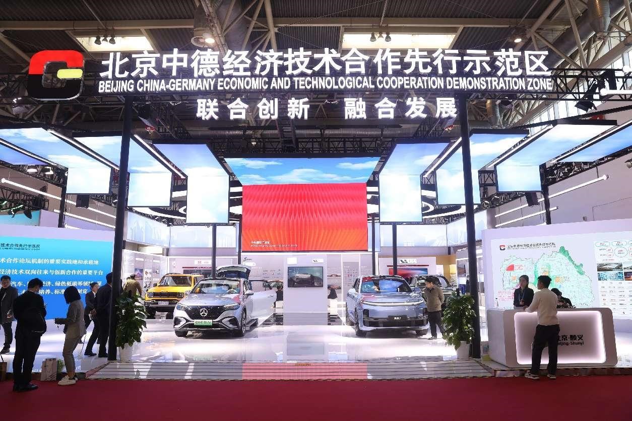 Vehicles are displayed at a booth at the first China International Supply Chain Expo held in Beijing, Nov. 29, 2023. (People's Daily Online/Chen Xiaogen)
