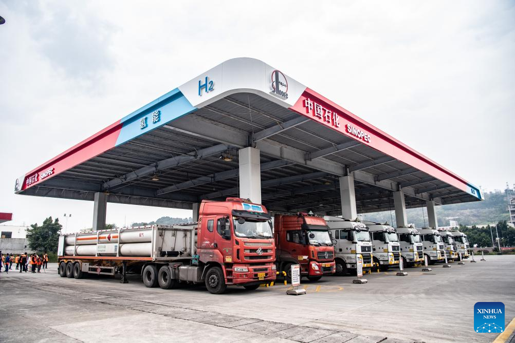 This photo taken on Dec. 20, 2023 shows a hydrogen supply center for hydrogen fuel cell vehicles in Changshou District of southwest China's Chongqing. The biggest hydrogen supply center for hydrogen fuel cell vehicles in southwest China came into operation here on Wednesday. (Xinhua/Tang Yi)