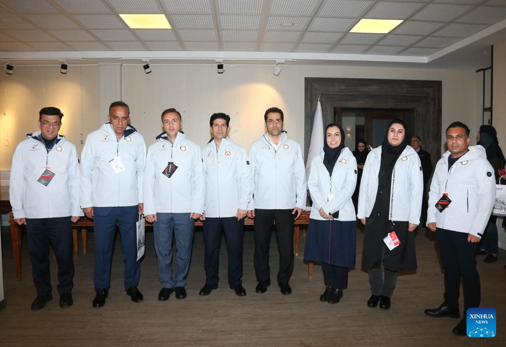 Several Iranian museum curators who will attend a specialized training course on visiting museums in China in January 2024 pose for a photo during the dispatching ceremony of an Iranian delegation dedicated to museums and cultural exchanges with China, in Tehran, Iran, Dec. 20, 2023. (Xinhua/Shadati)