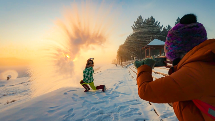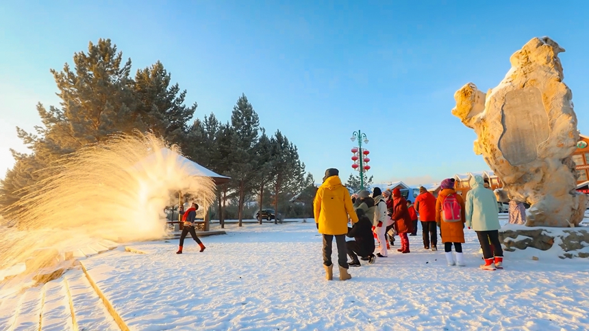 With temperatures in Mohe city, northeast China's Heilongjiang Province, plummeting to below minus 40 degrees Celsius in recent days, the city has become a magnet for snow lovers eager to experience the charm of ice and snow. Tourists are flocking to the Beiji village, also known as Arctic village, to take part in the unique phenomenon known as "splashing water into ice."