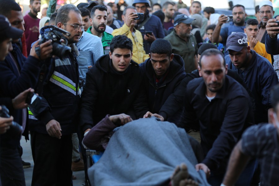 An injured man is transferred to a hospital in central Gaza Strip city of Deir el-Balah, on Dec. 19, 2023. (Xinhua)