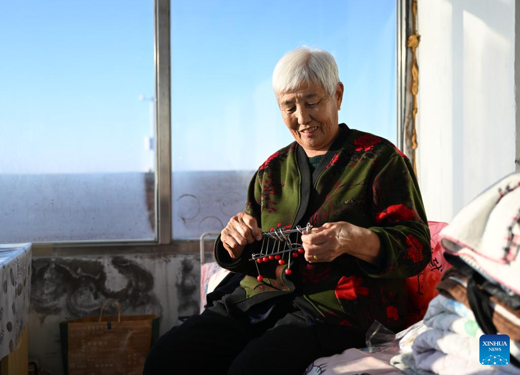 Erdendalai's mother Surenhwara plays puzzle games at home in Hulun Buir, north China's Inner Mongolia Autonomous Region, Dec. 16, 2023. (Xinhua/Bei He)