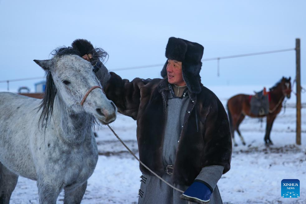 Winter usually means challenges for herdsmen living on the grasslands. Severe cold and snow always affect their daily life. But for Erdendalai, a herdsman living in Hulun Buir, winter is still a busy season. In addition to taking care of more than 200 heads of cattle, sheep and horses he owns, Erdendalai also enjoys an important activity of horse racing.