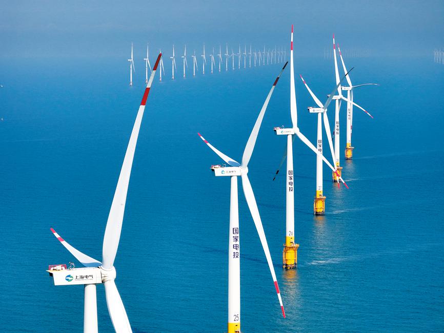 A view of a wind farm off the coast of Rudong county, Jiangsu Province. XU CONGJUN/FOR CHINA DAILY