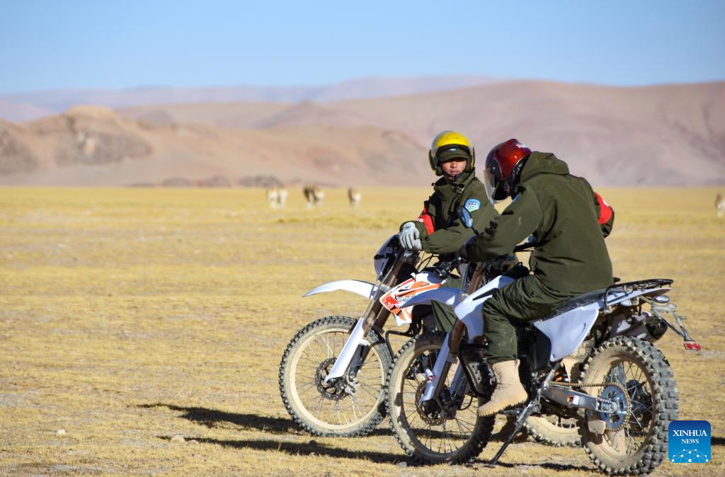 Rangers patrol the Changtang National Nature Reserve in southwest China's Xizang Autonomous Region, Dec. 17, 2023. (Xinhua/Liu Wenbo)