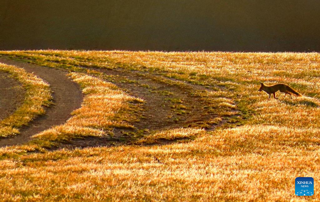 A Tibetan fox is pictured by Kelsang Lhundrup as he patrols the Changtang National Nature Reserve in southwest China's Xizang Autonomous Region, July 20, 2023. (Photo by Kelsang Lhundrup/Xinhua)