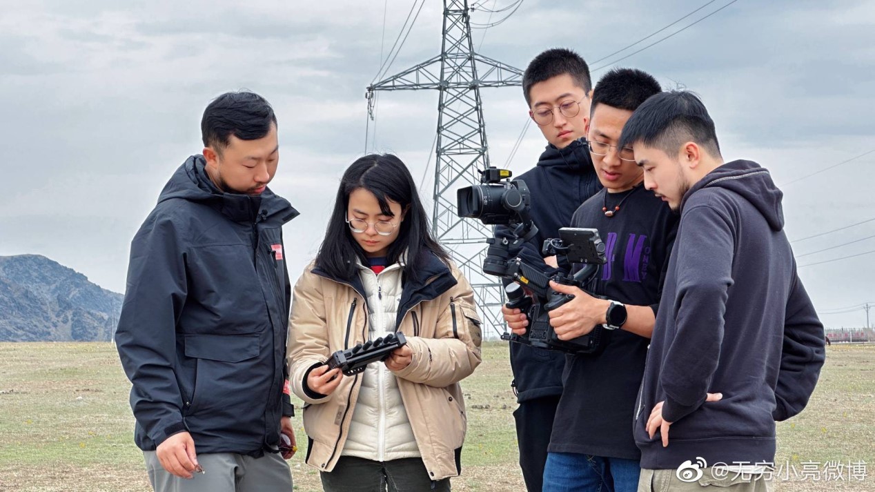 Zhang Chenliang (left), director of the media center of Chinese National Geography magazine, films a documentary about plants in northwest China's Xinjiang Uygur autonomous region. (Photo from Zhang Chenliang's account on the social media platform Weibo)