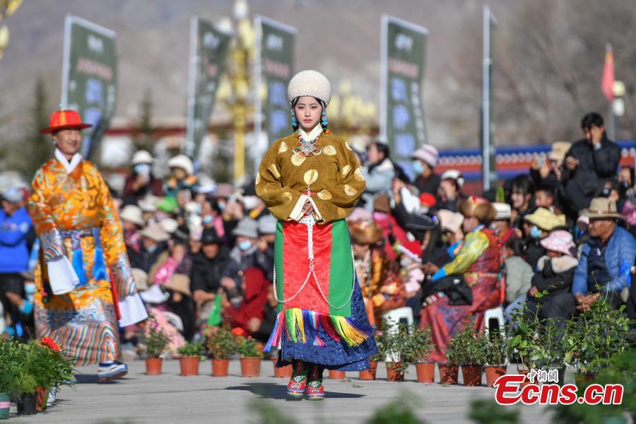 Fashion show presents traditional Tibetan costumes in Lhasa
