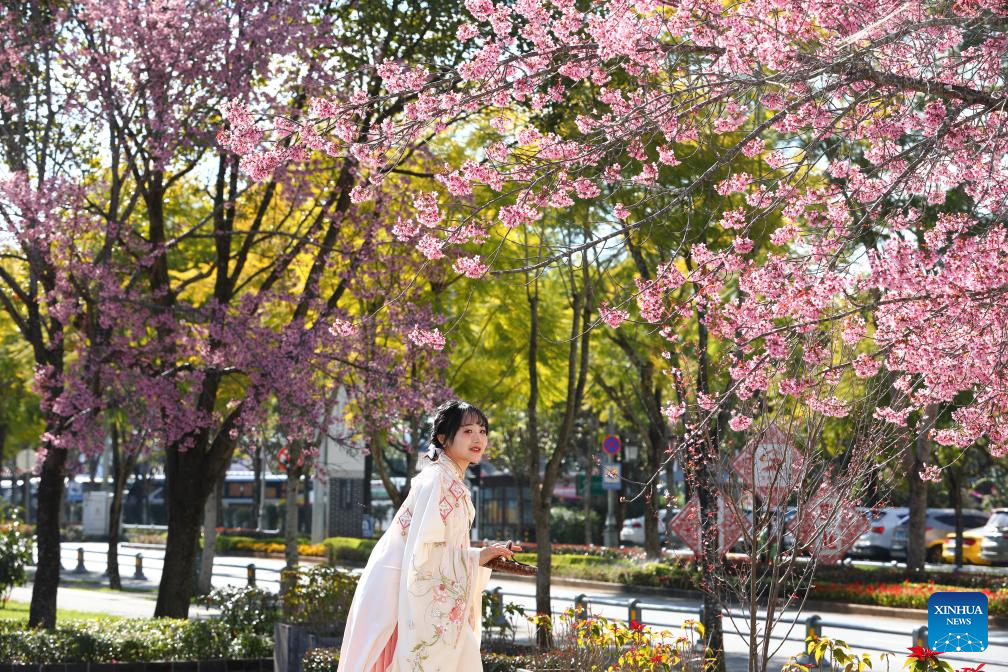 In pics: winter cherry blossoms in Kunming, SW China's Yunnan