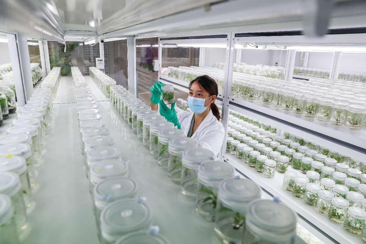 A researcher with the Yibin Forestry and Bamboo Industry Research Institute in southwest China's Sichuan province checks the growth of bamboo. (People's Daily Online/Zhuang Ge'er)