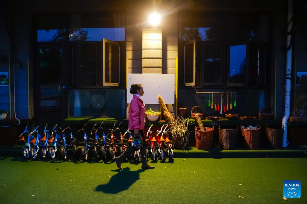 Yanggyi prepares to work at a kindergarten in Chengdu, southwest China's Sichuan Province, Dec. 15, 2023. (Xinhua/Shen Bohan)