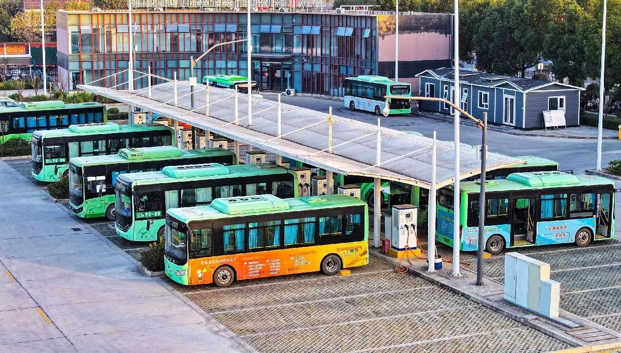 Electric buses are charged at a charging station in Fanchang district, Wuhu, east China's Anhui province. (People's Daily Online/Lu Junyuan)