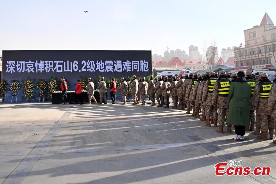People pay a silent tribute during a mourning ceremony for earthquake victims at Dahejia Township of Jishishan County, northwest China's Gansu Province, Dec. 25, 2023. (Photo/China News Service)