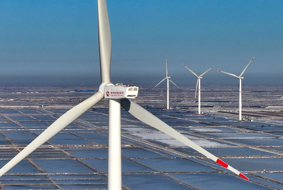 In July this year, for example, the world's first 16-MW ultra-large offshore wind turbine went into operation in east China's Fujian Province. One wind turbine can produce 66 million kWh per year, which is equivalent to the annual electricity consumption of 36,000 homes.