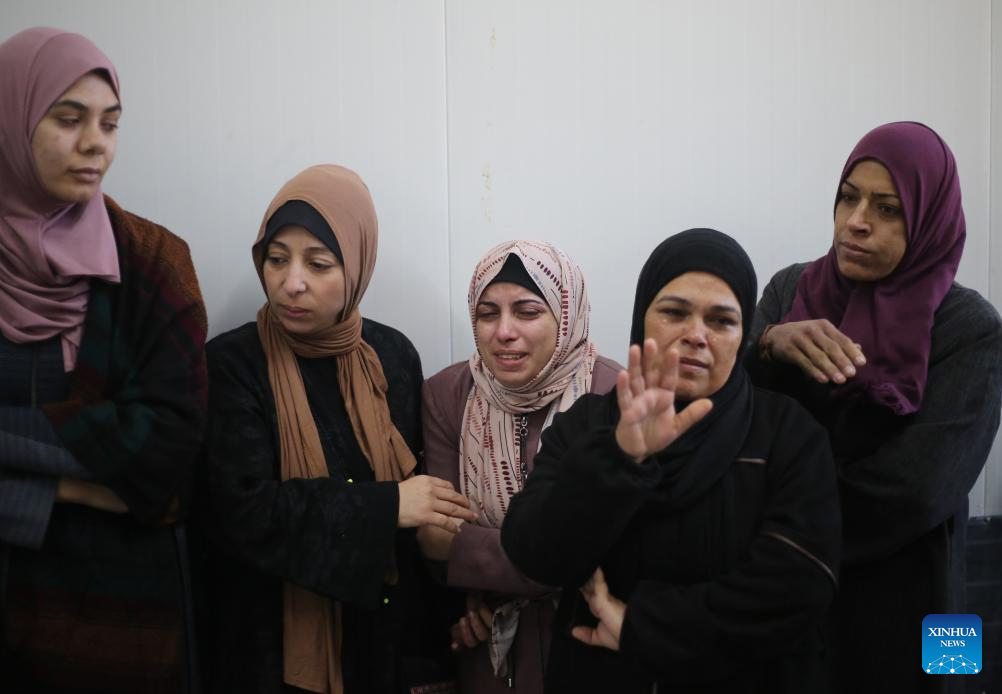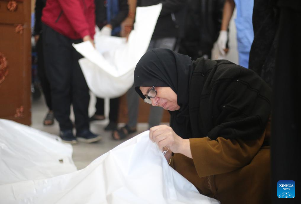 People mourn victims at a hospital in the southern Gaza Strip city of Rafah, on Dec. 26, 2023. At least 20,915 Palestinians have been killed, and 54,918 others wounded in the Israel-Hamas conflict since Oct. 7, the Gaza-based Health Ministry said Tuesday. (Photo by Khaled Omar/Xinhua)