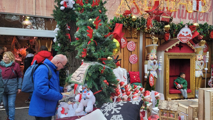 People visit a Christmas market in The Hague, the Netherlands, Dec. 23, 2023. (Xinhua/Wang Xiangjiang)