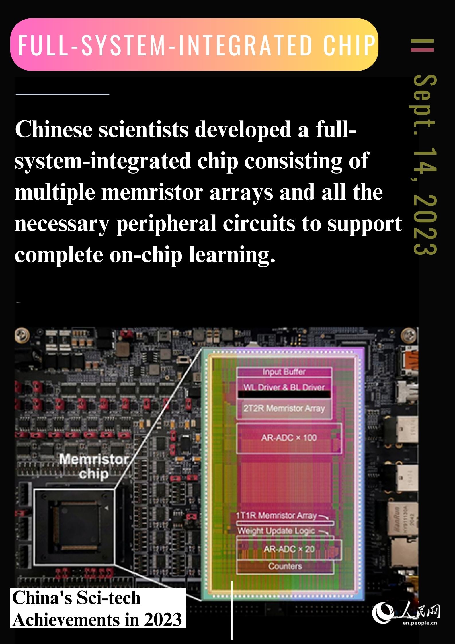 Chinese scientists have developed a full-system-integrated chip consisting of multiple memristor arrays and all the necessary peripheral circuits to support complete on-chip learning.