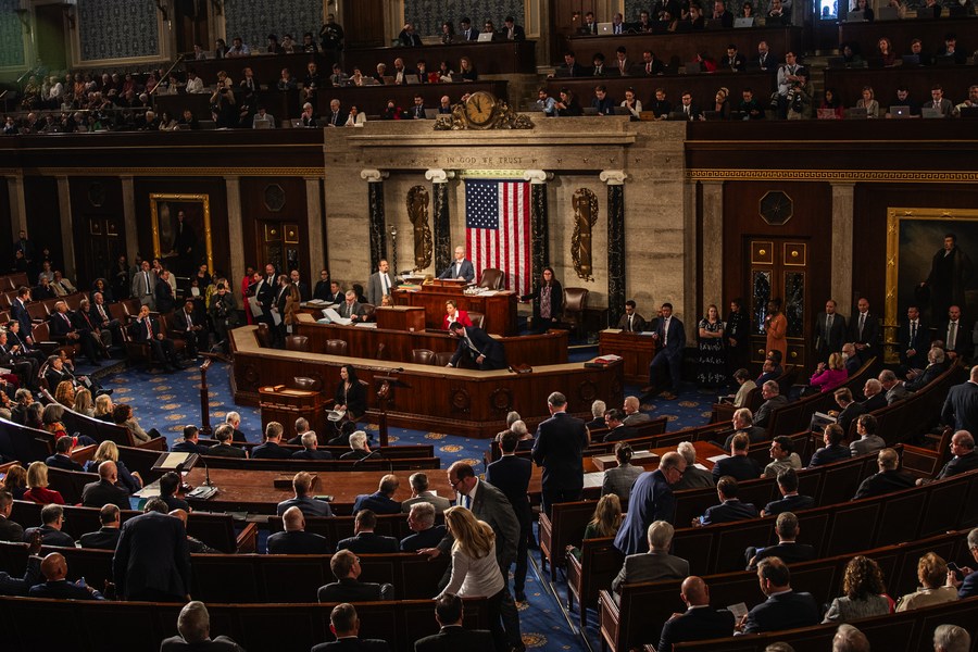 NEW YORK, Dec. 27 (Xinhua) -- If asked to describe U.S. politics for the year 2023 in just one word, it would be "chaos."