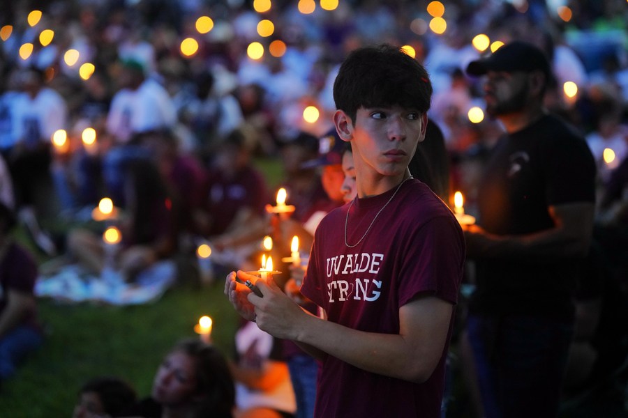 People attend a candlelight vigil for victims of a school mass shooting in Uvalde, Texas, the United States on May 24, 2023. (Xinhua/Wu Xiaoling)