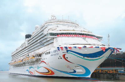China's first domestically-built large cruise ship, the "Adora Magic City," was delivered in Shanghai on Nov. 4. China has been able to build an aircraft carrier, a large liquified natural gas carrier and a large cruise ship -- the most challenging shipbuilding projects. The 135,500-gross-tonnage cruise ship, which is 323.6 meters long and 37.2 meters wide, consists of 107 systems, 55,000 sets of equipment, 25 million components and parts, and 4,750 kilometers of cables.
