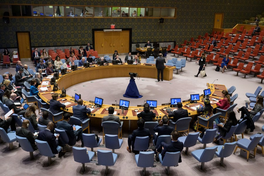 This photo taken on May 24, 2023 shows the Security Council meeting on the situation in the Middle East, including the Palestinian question, at the UN headquarters in New York. (Manuel Elías/UN Photo/Handout via Xinhua)