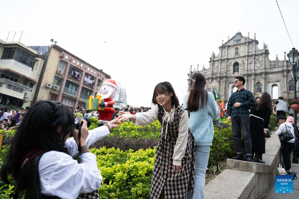 Tourists visit the Senado Square in south China's Macao, Dec. 31, 2023. (Xinhua/Cheong Kam Ka)