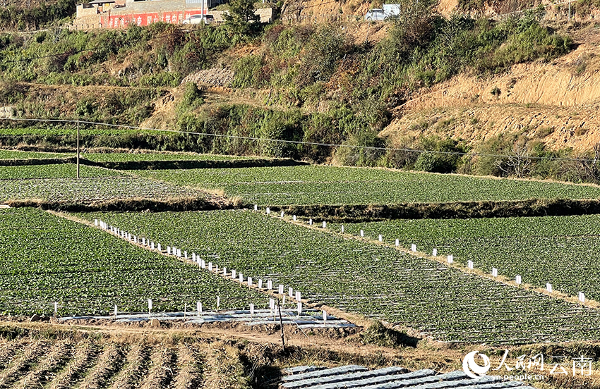 Photo shows white radish fields in Shaqiao township, Nanhua county, Chuxiong Yi Autonomous Prefecture, southwest China's Yunnan Province. (People's Daily Online/Cheng Hao)