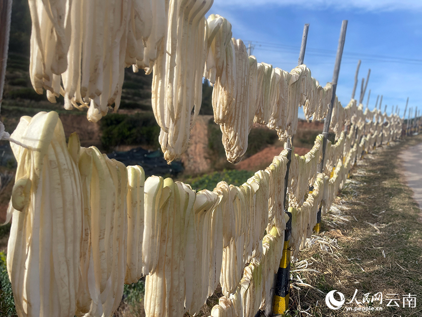 Photo shows dried white radishes in Shaqiao township, Nanhua county, Chuxiong Yi Autonomous Prefecture, southwest China's Yunnan Province. (People's Daily Online/Cheng Hao)