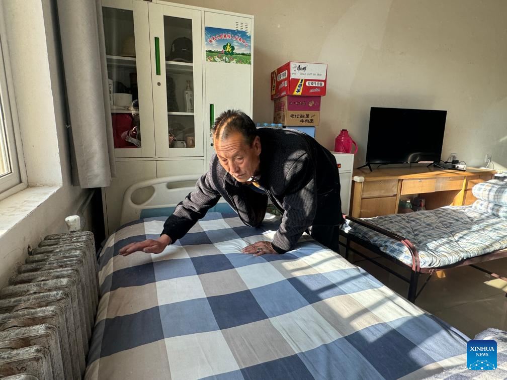In the county seat of Jishishan, Zhao Huaisheng does not have to worry about houses. Having moved into a nursing home, the 70-year-old man showed Xinhua the bathroom and barrier-free facilities in his apartment. He was also provided with free clothes.