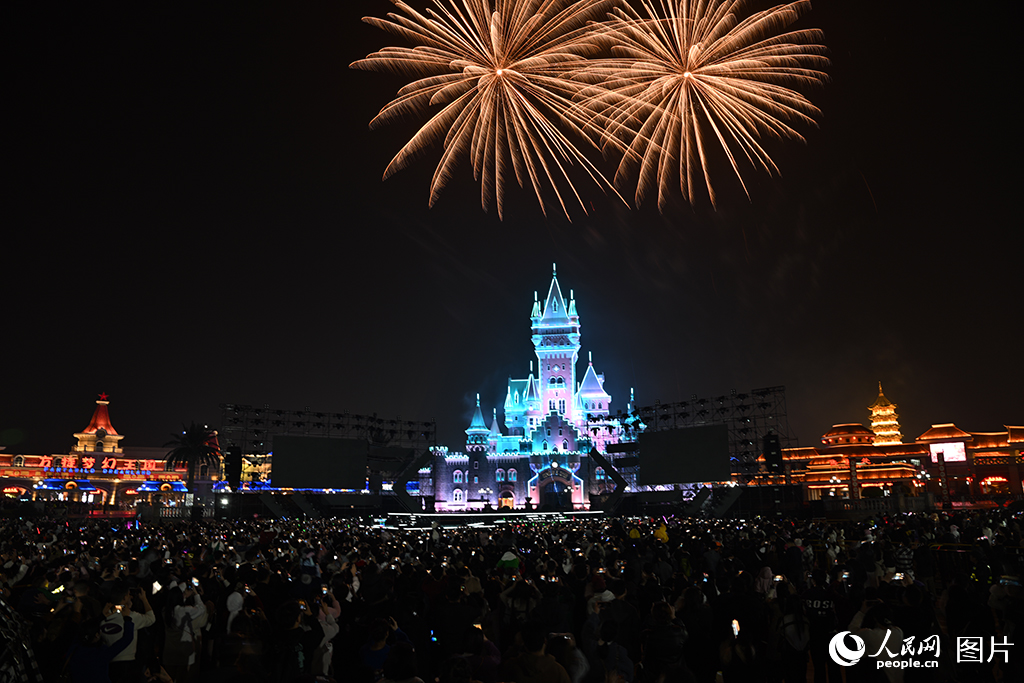 A float parade takes place at Happy Valley in north China's Tianjin, Dec. 31, 2023. (People's Daily Online/Cui Xinyao)