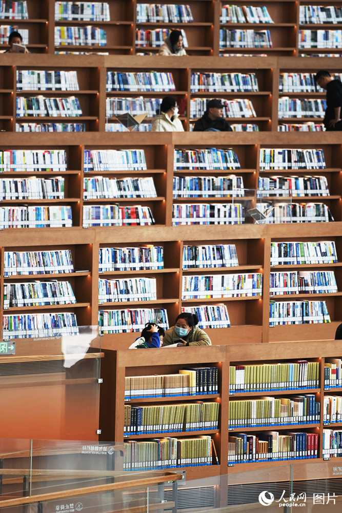Visitors flock to Beijing City Library for visits and reading on Jan. 1, 2024. (People's Daily Online/Weng Qiyu)