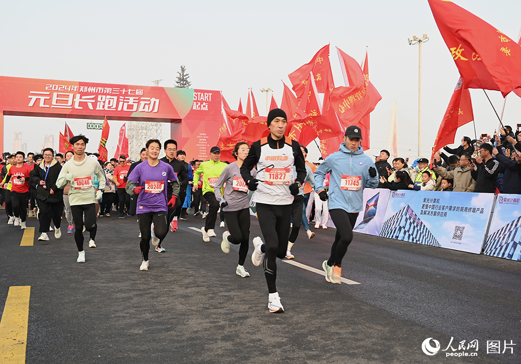 Over 11,000 citizens participate in a New Year's running event in Zhengzhou, central China's Henan Province, Jan. 1, 2024. (People's Daily Online/Wang Yuxing)